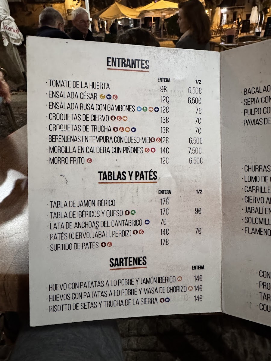 “ 5*s for quick service, good food and great value for money. The busiest place in Plaza Santa Maria, full for lunch and dinner, everyone Spanish but us I think. Not much English spoken and no English translation of the menu but well worth making an effort to eat here. Seating outside under plane trees, with an awning for shade. ”